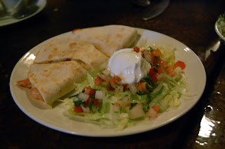 As far as entrées go, Andy had a burrito filled with garlic shrimp (inspired, he says, by how good the quesadilla was):