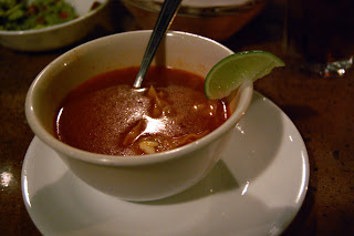 The soup was wonderful. Tortilla Soup has been kind of a sore spot for me lately, as the last version I had was thin, flavorless, overly hot, with gargantuan chunks of chicken and veggies too big to eat with a spoon and almost necessitating a knife. Riviera Maya's version, however, was sublime. The broth was bright red, tinged with broiled tomatoes, and scented with fried onions, chile, and a flavor that instantly called to mind miso. The lime served with the soup was a nice touch, but I wish I would have tried it without smashing my whole lime in first, as I imagine the acidity I added probably wasn't needed.