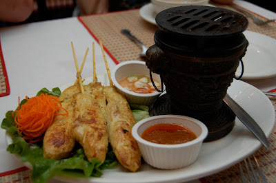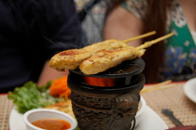 You may notice something here: as often as we've ordered Chicken Satay, we've never had one with the grill included! Part dinner theatre, part do-it-yourself-cooking, the point is that the chicken is fully cooked and ready to eat, but you get to put the finishing touches on it at your table, letting it char, sizzle, and smoke while all the tables around you get insanely jealous. Does it make the chicken taste any better? Sure, it adds some flavor. But it is fantastic drama, making the food interactive. It's like flambé, except far less lame.