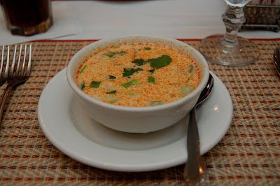 Andy's soup was a scorcher. But big, bright citrus flavors of lime juice and lemongrass, and a nice, initial flame-out in the back of your throat.