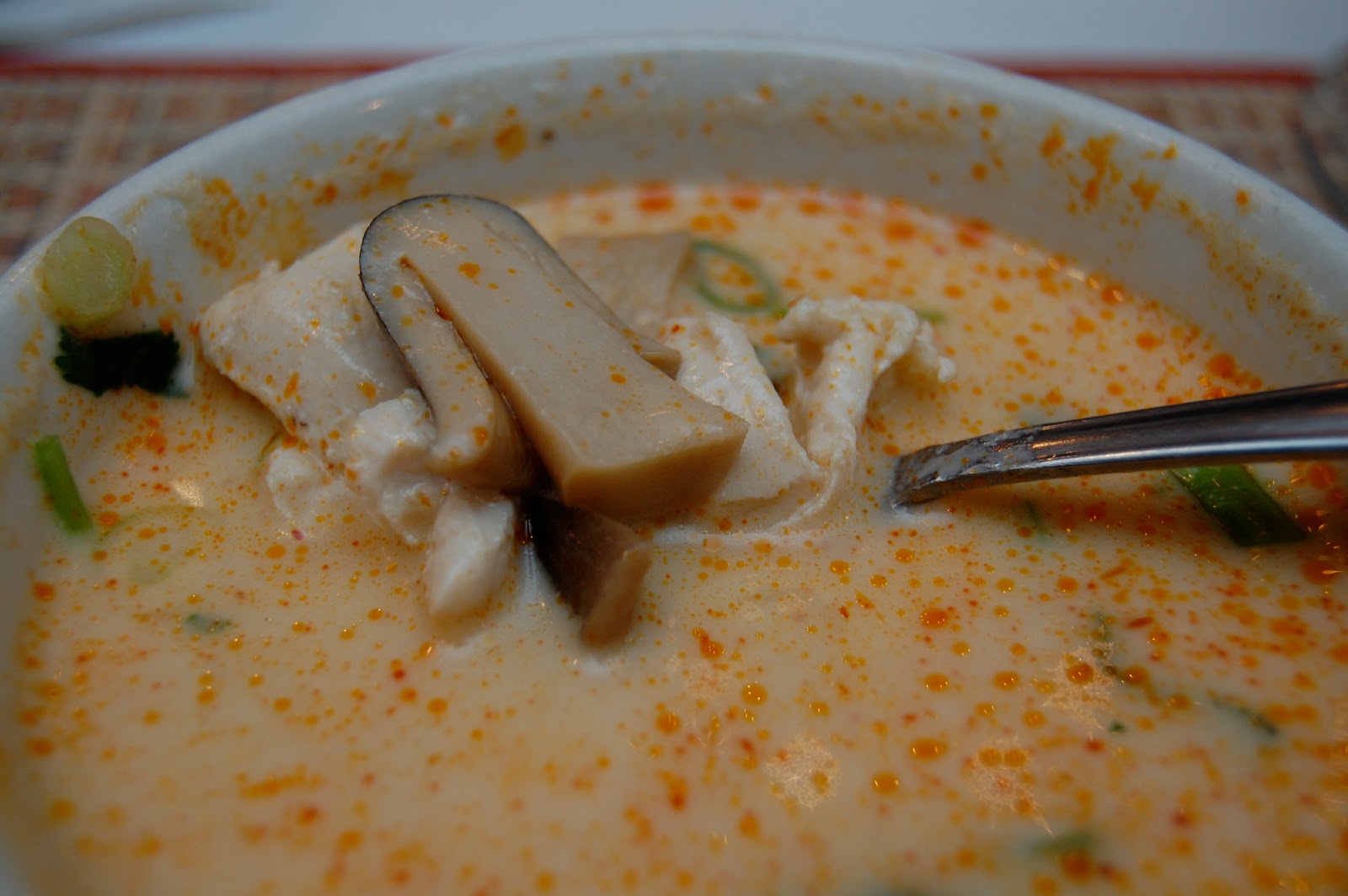 While Lauren, Sonja, and I had Tom Kha Gai, a creamy, luscious soup with coconut milk, straw mushrooms and chicken (or veggies, in Sonja's case):