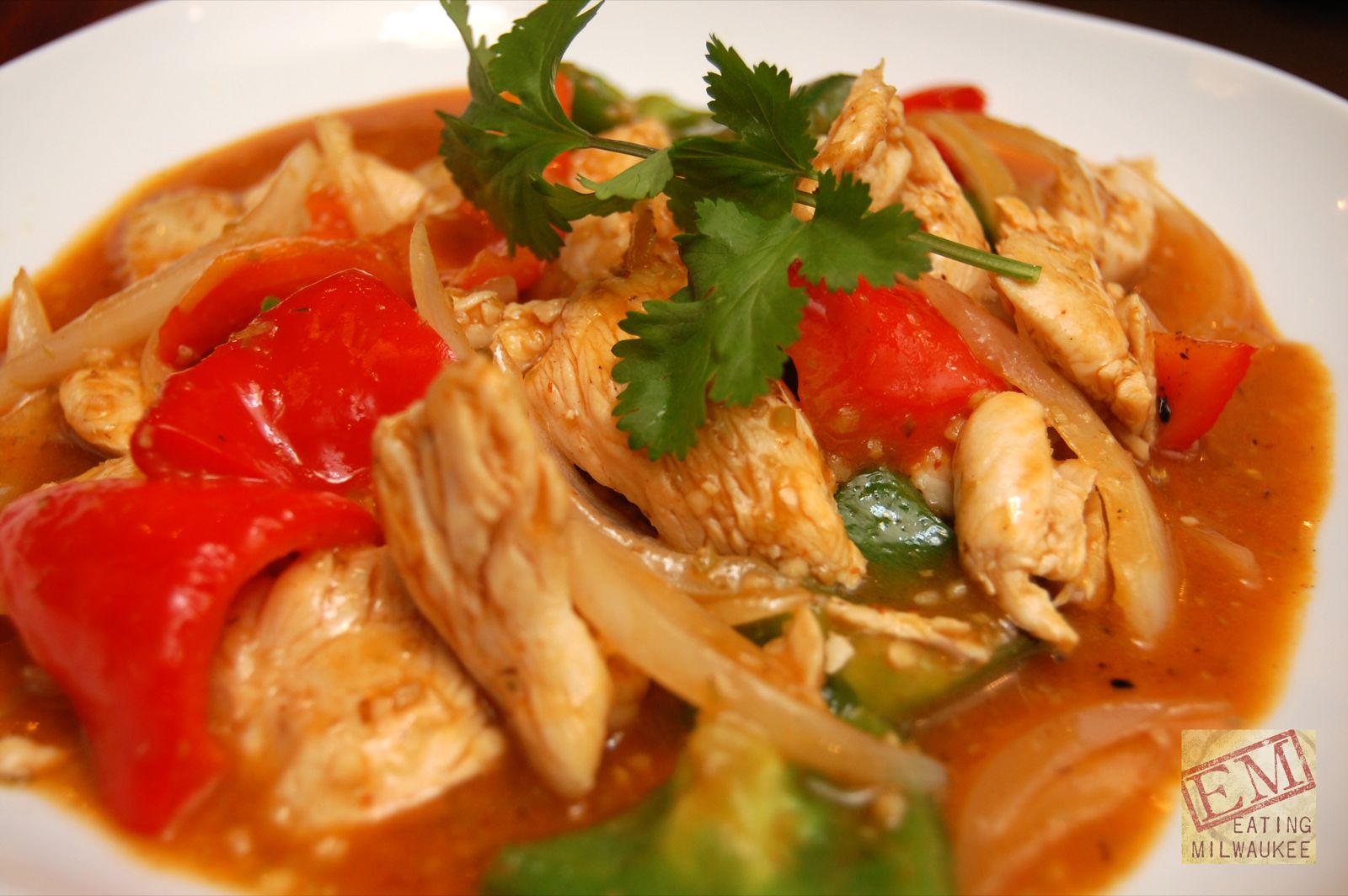 The Saigon Wings were a real mind-bender. Marinated, then coated in... sugar? Deep fried, so that the sugar? caramelizes and forms little crunchy sweet scales all over the surface of the wing. The photo doesn't really portray the actual texture: it's as if the wing were crackleur. Very, very odd. But tasty. Odd and tasty. I'm still a little miffed... as I was harried, taking shot after shot of our food, my fine Eating Milwaukee staff-mates ate every wing except the one I had on my plate: which was very tasty. I just wish I could have downed may another wing. If not, even just a drummy would have sufficed...