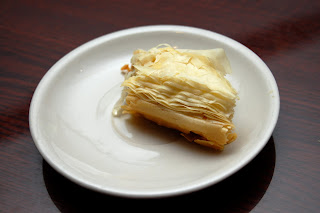 Rounding out our meal was a frosty glass of rosewater lemonade, and a few desserts. The obligatory baklava: