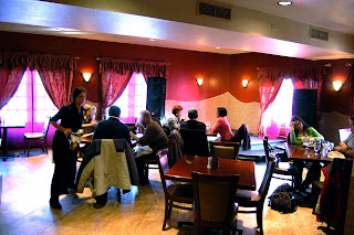 We descended on Casablanca for lunch on a Saturday, to sample the mythical "lunch buffet" we had heard so much about. After a few near-misses in East Side traffic, and a few trips around the block thanks to my GPS, I finally got parked in the smallish, but nonetheless convenient parking lot next to the restaurant. This put me in a good mood immediately. An East Side business with a parking lot. It's almost like saying "touching an electric eel with insulating gloves" or "an Illinois driver with good manners." You'd really like it to be the case all the time, but in reality it almost never happens. Ever.